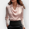 Elegant Satin Blouse with Waterfall Collar