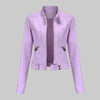 This women’s leather jacket offers a sleek cut with refined details to make it ideal for formal evenings or polished daytime looks. The jacket features a stand-up collar and full-front zip for a clean silhouette. Its inner lining provides added coverage when worn over finer layers. Available in several shades, it mixes well with both skirts and tailored trousers.