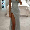Turn heads at your next event with this glamorous Women’s Evening Dress, designed for elegance, drama, and sparkle. Crafted from shimmering sequin fabric with a flowing A-line silhouette, this floor-length gown features delicate spaghetti straps, an off-shoulder detail, and a bold high slit for added allure.