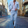 Achieve a refined and airy with the JacobNora AUS Men's Slim Fit Linen Suit. This two-piece set, consisting of a blazer and trousers, is perfect for both business and formal occasions. Crafted from linen, this suit keeping you stylish throughout the day. The notch lapels and two-button closure add a classic, making it a versatile option for any event.