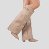 Step into standout style with these high block-heel flap boots that blend height with striking design. The structured flap and clean lines offer a fashion-forward silhouette, while the chunky heel provides steady elevation. These boots suit both statement looks and everyday ensembles.