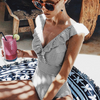 Give your summer style a retro twist with the Retro Striped Swimsuit – perfect for every poolside adventure!