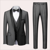 β Three-piece suit includes jacket, vest, and trousers for a complete look
