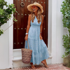 The boho lace tiered maxi dress captures romantic charm and carefree elegance. Featuring a flowing A-line silhouette and delicate lace detailing, this dress is perfect for outdoor events, beach strolls, or dreamy summer evenings. Crafted from soft synthetic fibers, it offers both comfort and graceful movement.