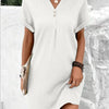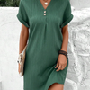 This elegant mini dress features a V-neck and high waist, creating a flattering silhouette while balancing style and ease. Perfect for summer days, casual outings, or a chic daytime look.