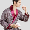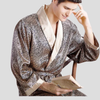 Designed for lounging with a refined touch, this men’s satin bathrobe features a flowing kimono cut and adjustable waist tie. Its fabric drapes elegantly, while the wide sleeves and wrap style make it simple to wear over nightwear or loungewear. Ideal for quiet mornings or relaxed evenings at home.