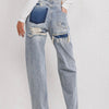 These vintage-inspired jeans offer the perfect blend of classic style and modern comfort. Crafted from high-quality denim, they provide a durable and comfortable fit. The subtle ripped details and contrasting back pockets add an edgy touch to your everyday look, making these jeans a stylish and versatile wardrobe essential.