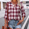 Brighten your wardrobe with this women’s checked blouse featuring long sleeves and an elegant V‑neckline. Crafted for both comfort and style, this blouse showcases a soft, flowing fabric in a chic check pattern, perfect for transitioning from work to weekend. Its relaxed yet polished cut offers effortless versatility and easy styling.