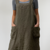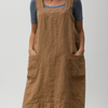 Women’s Cotton Linen Apron Style Dress with Pockets