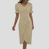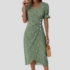 Step into summer with timeless elegance in this Elegant Floral Midi Dress, crafted with a breezy silhouette and vintage-inspired details. The flattering V-neckline, soft puff sleeves, and ruched waist combine to create a feminine silhouette, while the floral pattern and pleated A-line design add movement and charm.