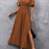 Step into effortless elegance this summer with the Women’s Elegant V-Neck Maxi Dress. Designed with a flattering empire waist and flowing A-line silhouette, this ankle-length dress is perfect for casual days, garden parties, or weekend getaways. The soft polyester fabric and flutter sleeves add charm and comfort to your seasonal wardrobe.