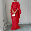 Experience effortless elegance with this graceful maxi dress, featuring a high neckline, flowing batwing sleeves, and a beautifully pleated skirt (similar styles seen on Couture Emporium). Made from lightweight, breathable fabric, it delivers fluid movement and a flattering drape—ideal for special occasions or a chic everyday look.